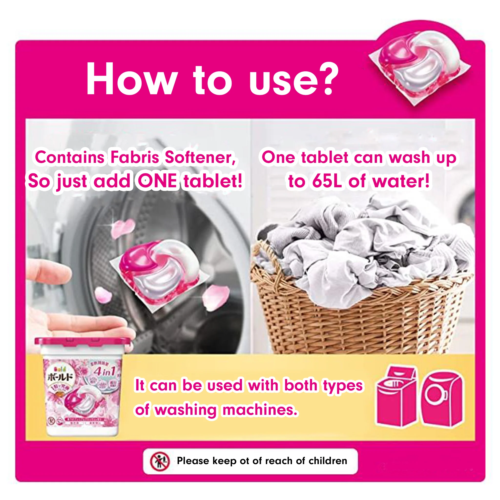 New Laundry Detergent Gel Ball 4D new structure! Cleans the laundry trough while washing clothes. Suitable for both general and drum washing machines. Avoid strong or fast washing modes for optimal cleaning results.